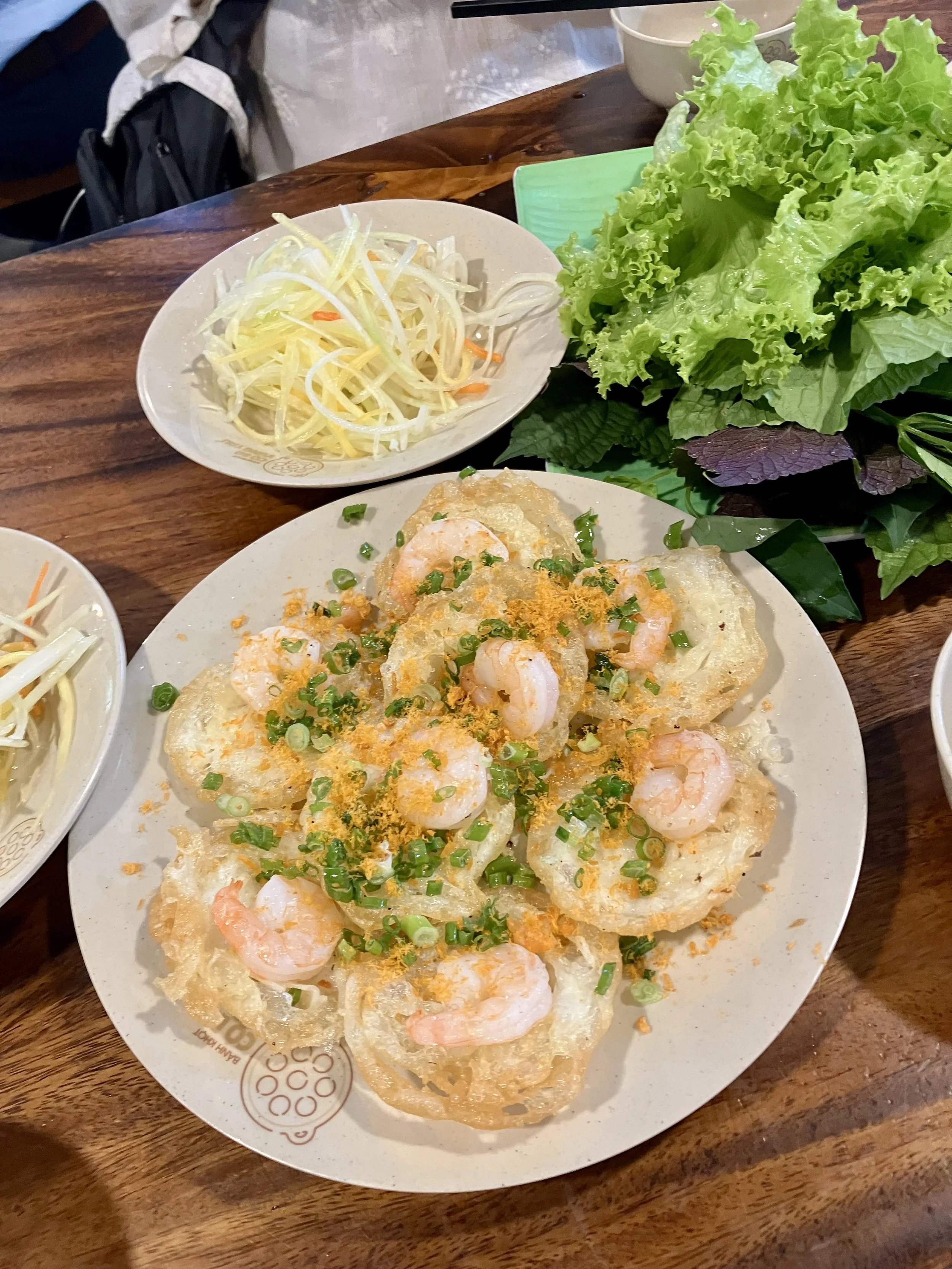 Vung Tau is 2 hours west of Ho Chi Minh City with a population of roughly 500 000 million people. It is known for the Front and Back Beaches, the tallest Christ Statue in Asia and their famous Banh Knot food dish(see photo of the small crepe with shrimps, very yummy!).